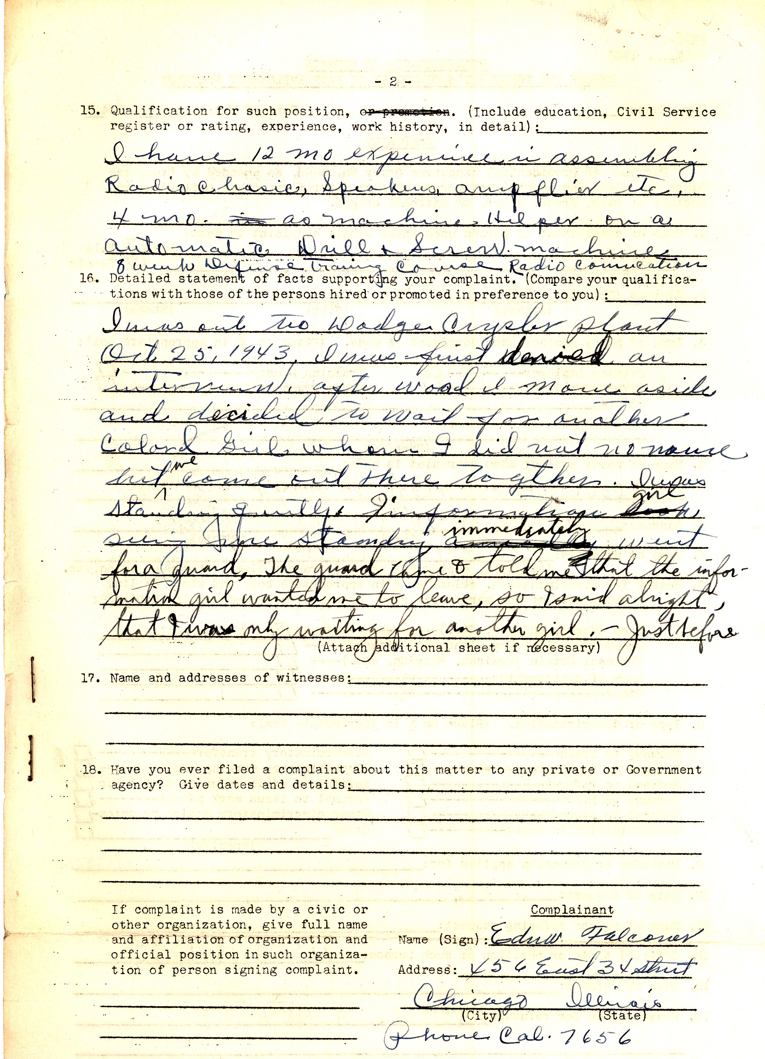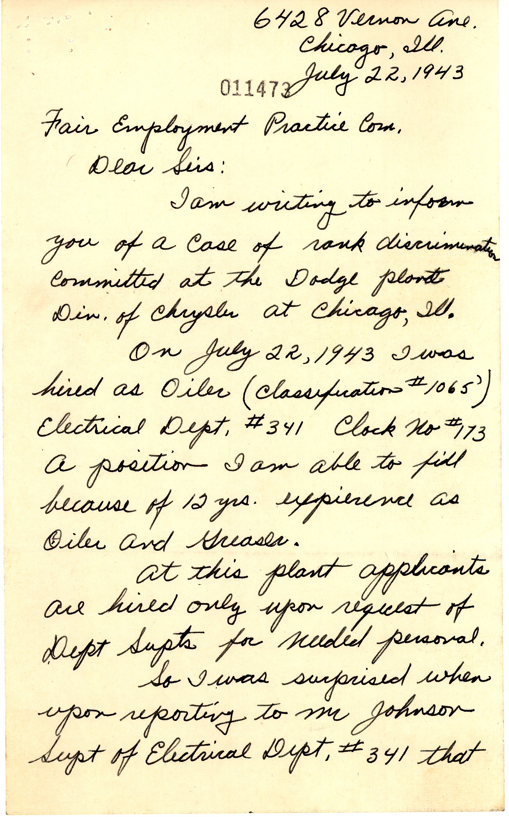 DISCRIMINATION ON THE HOMEFRONT: BLACK WORKERS FIGHT FOR THEIR RIGHTS IN CHICAGO 1942-1945
