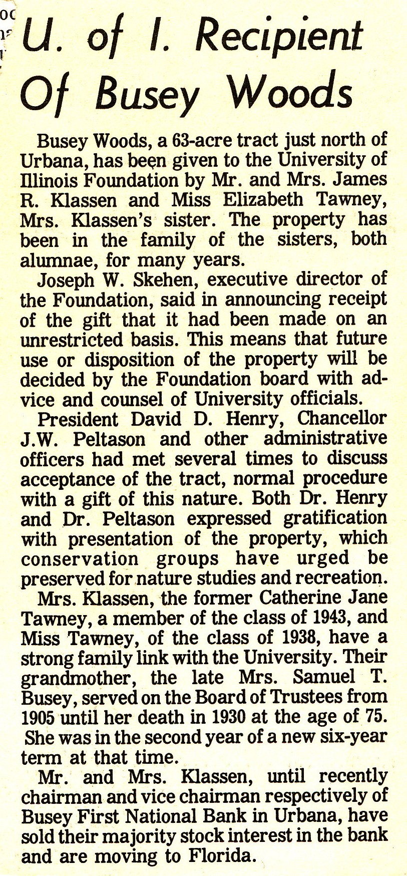 article, Busey Woods Donation.