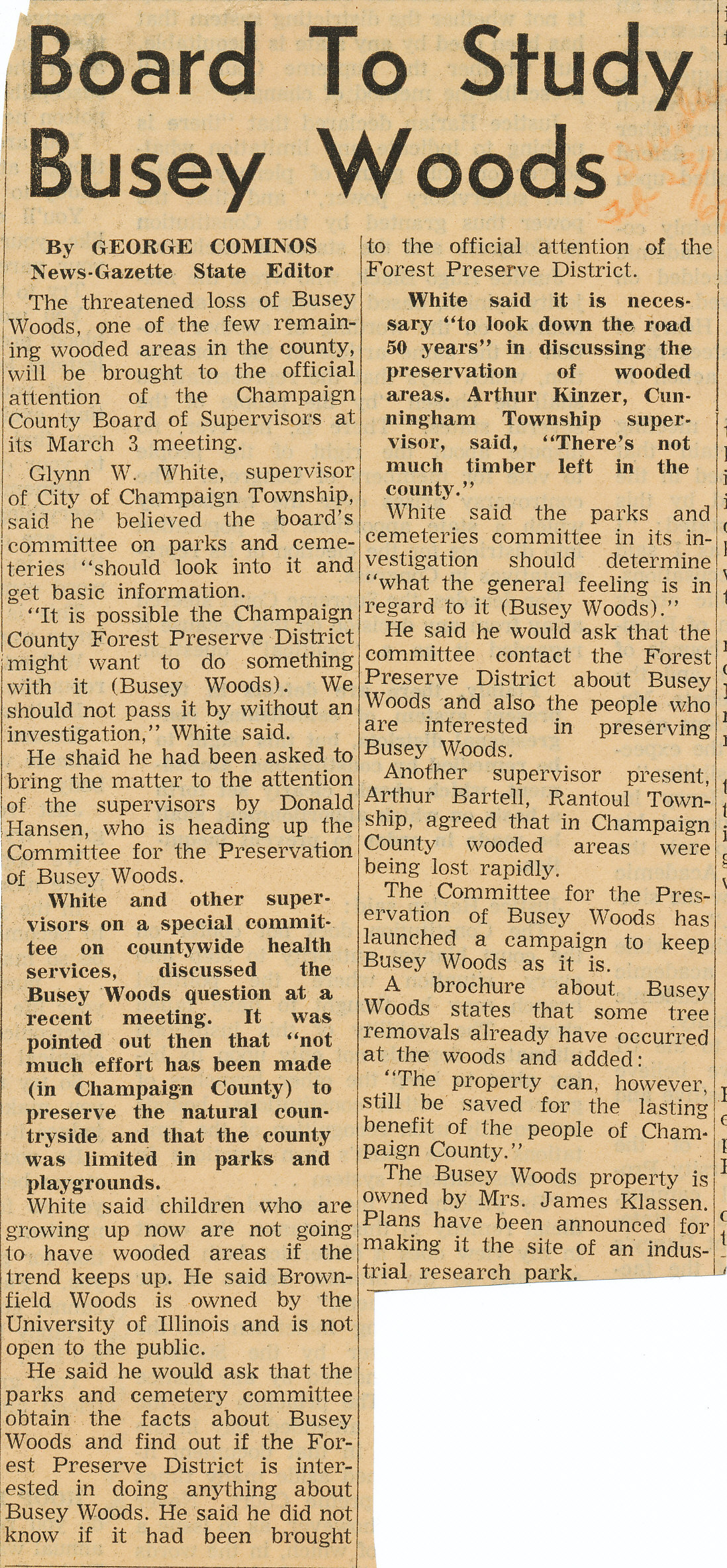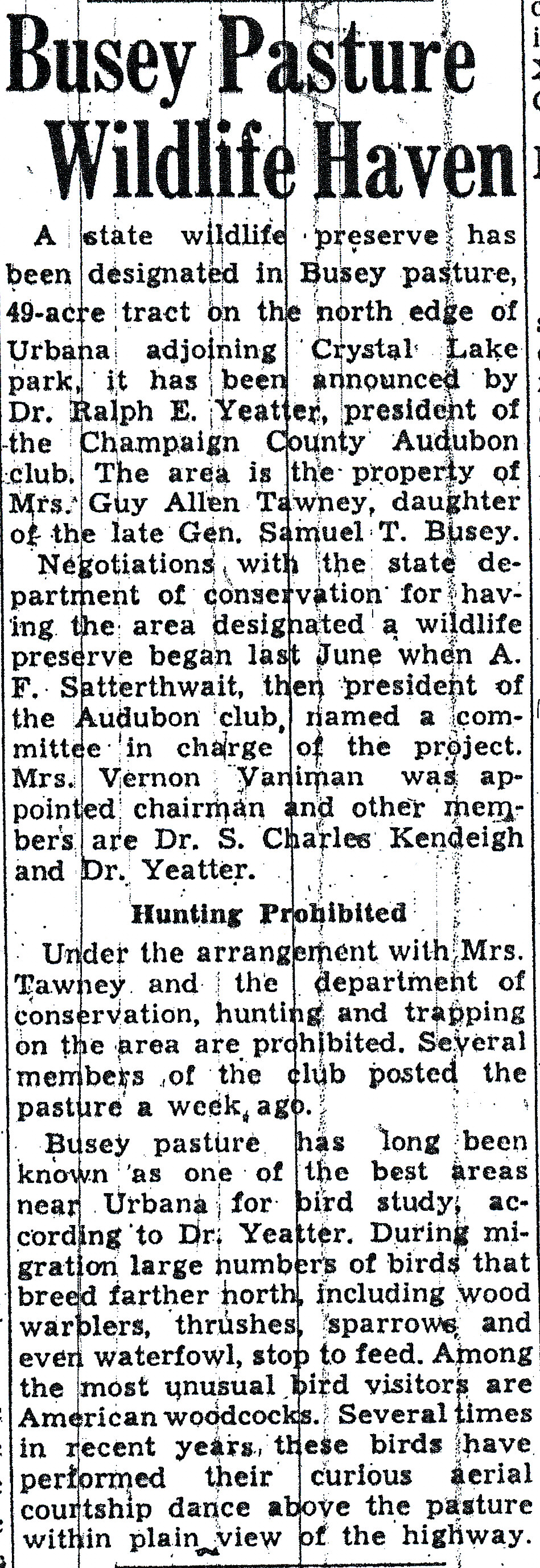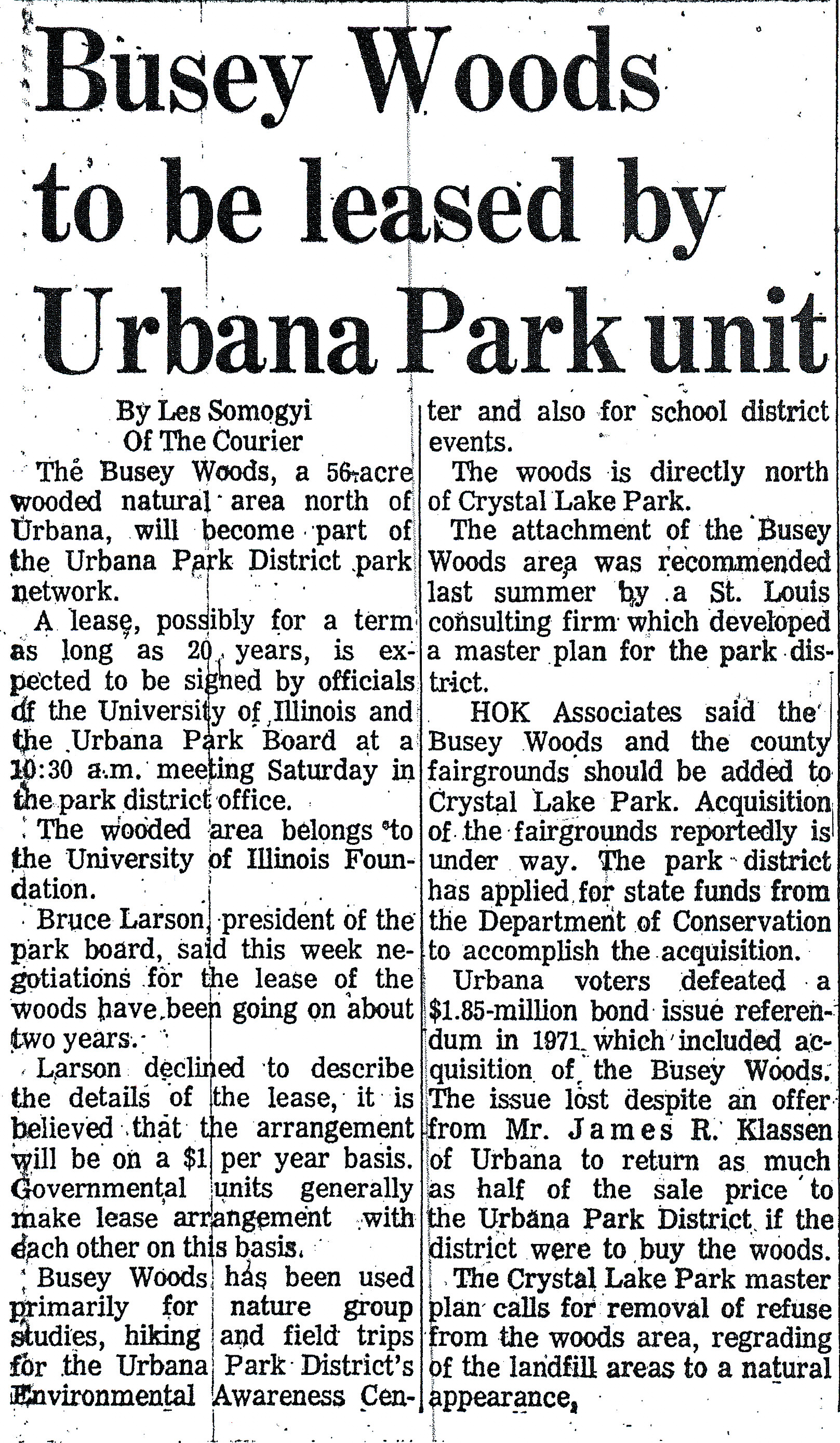 newspaper article, Busey Woods Park Dist.