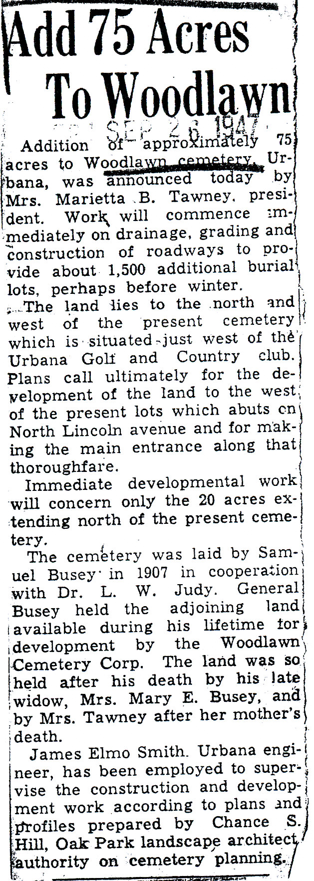 75 Acres to Woodlawn points out that the Busey