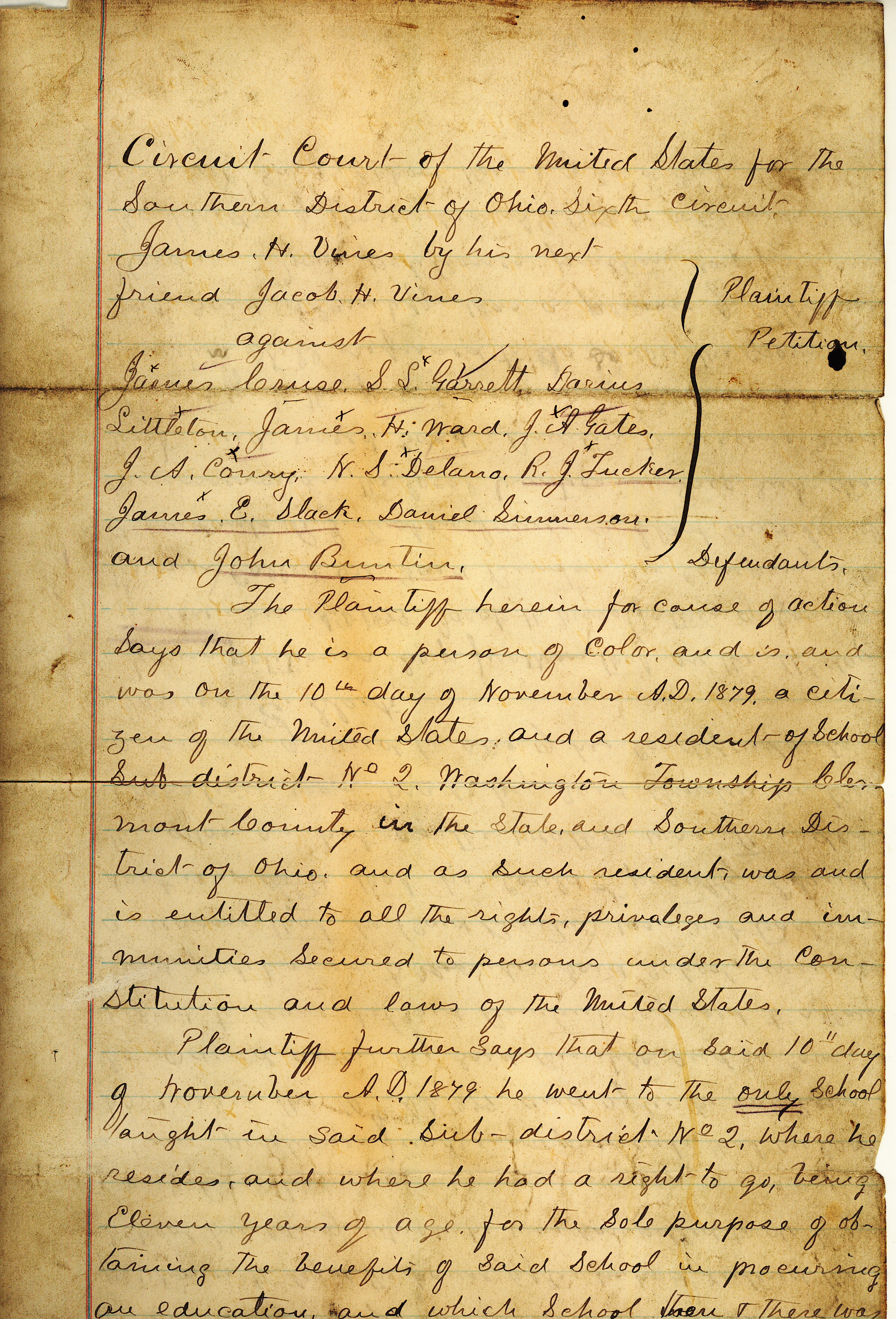 Lesson 2: 1881 case of Vines v. Cruse et al. (2-3 days)