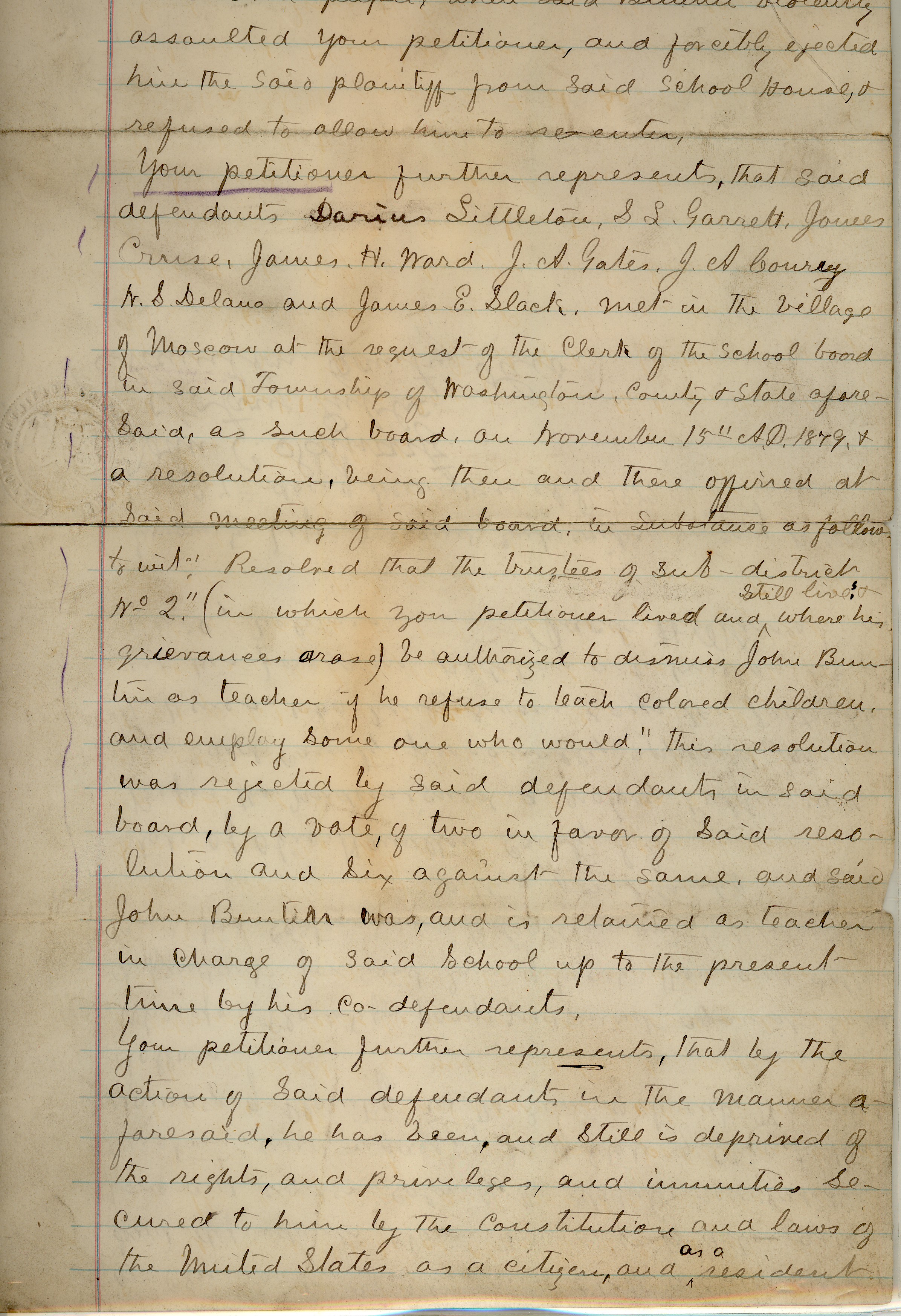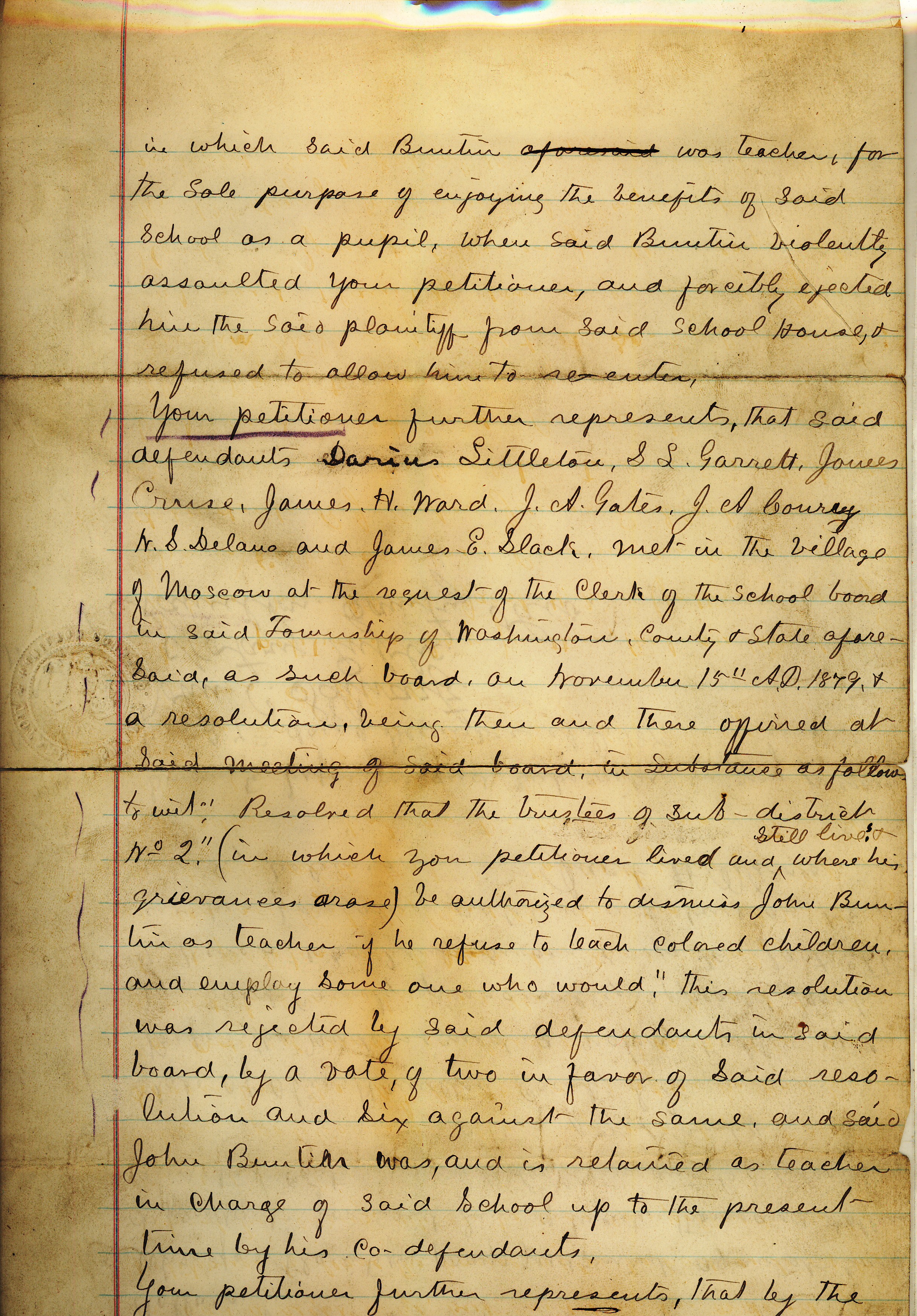 of case: In 1881, an African American student’s father sued his son’s school