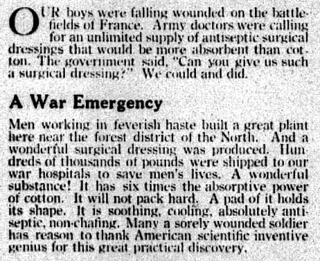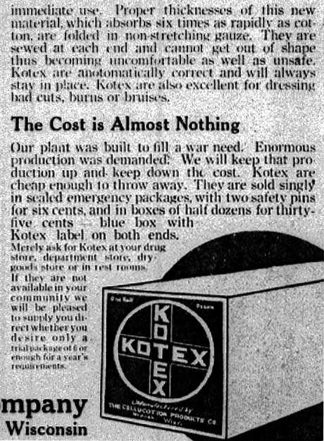 the groups the 1921 Kotex Ad and text to