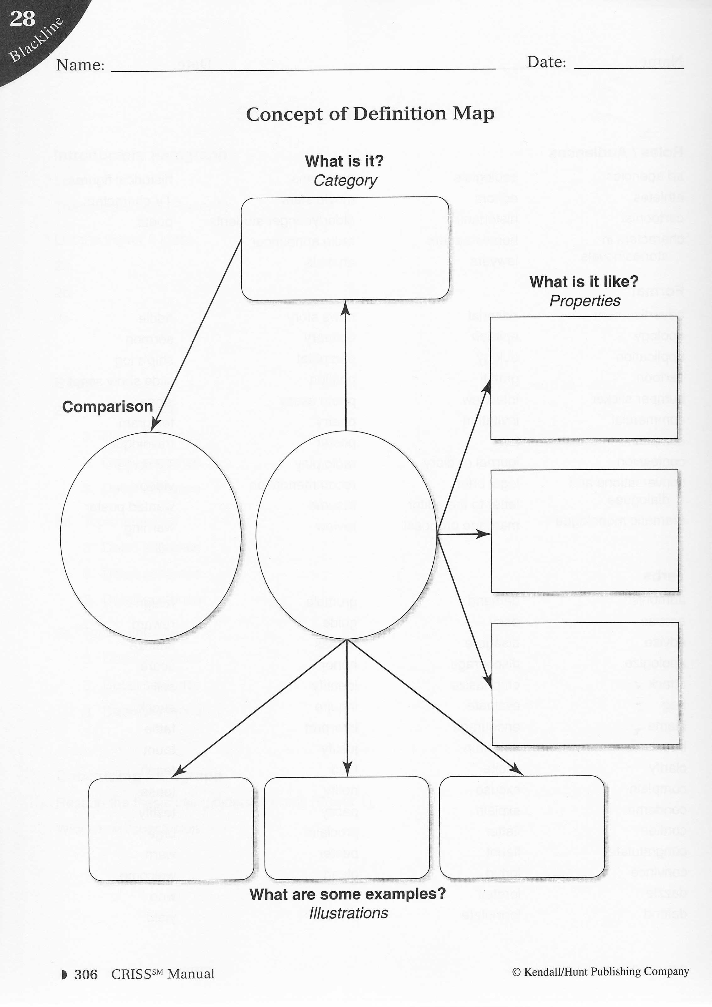 á Concept of Definition Map—Graphic organizer used to help students learn a fuller definition of a complex vocabulary word.